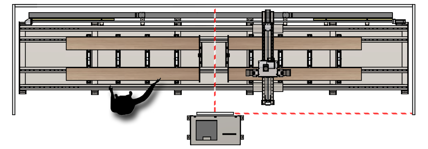 • Clôture de protection sur 3 côtés avec rideau optique à l’avant.