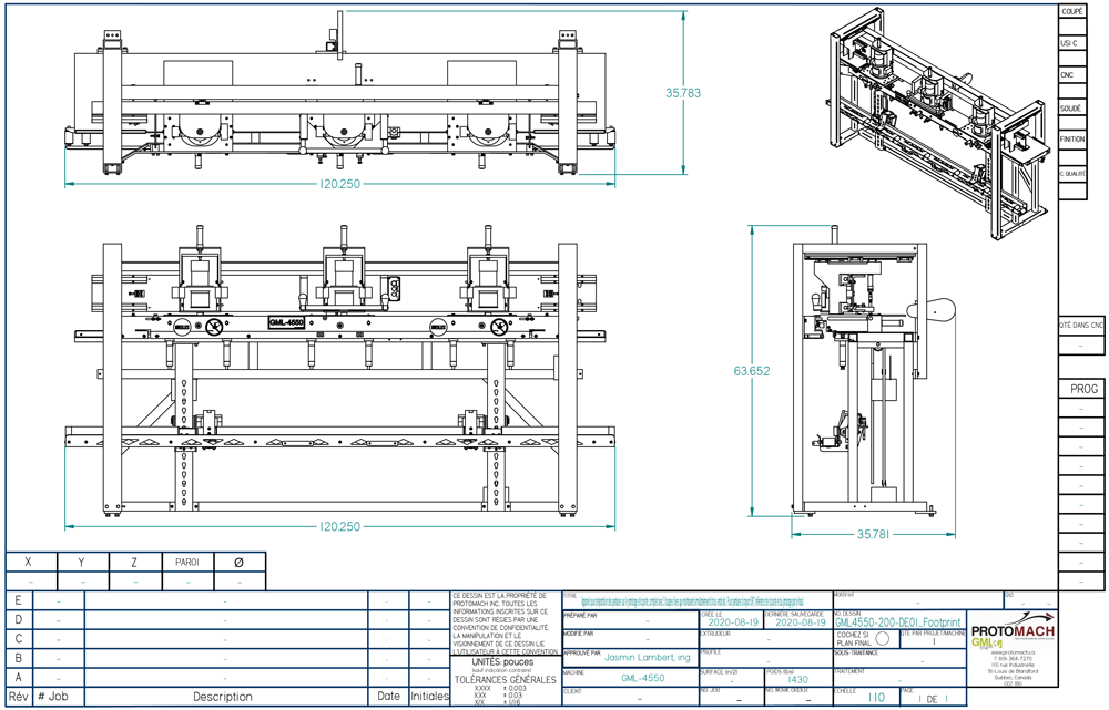 Excluant gabarits (2) à copier pour GML4550 (vendus séparément)