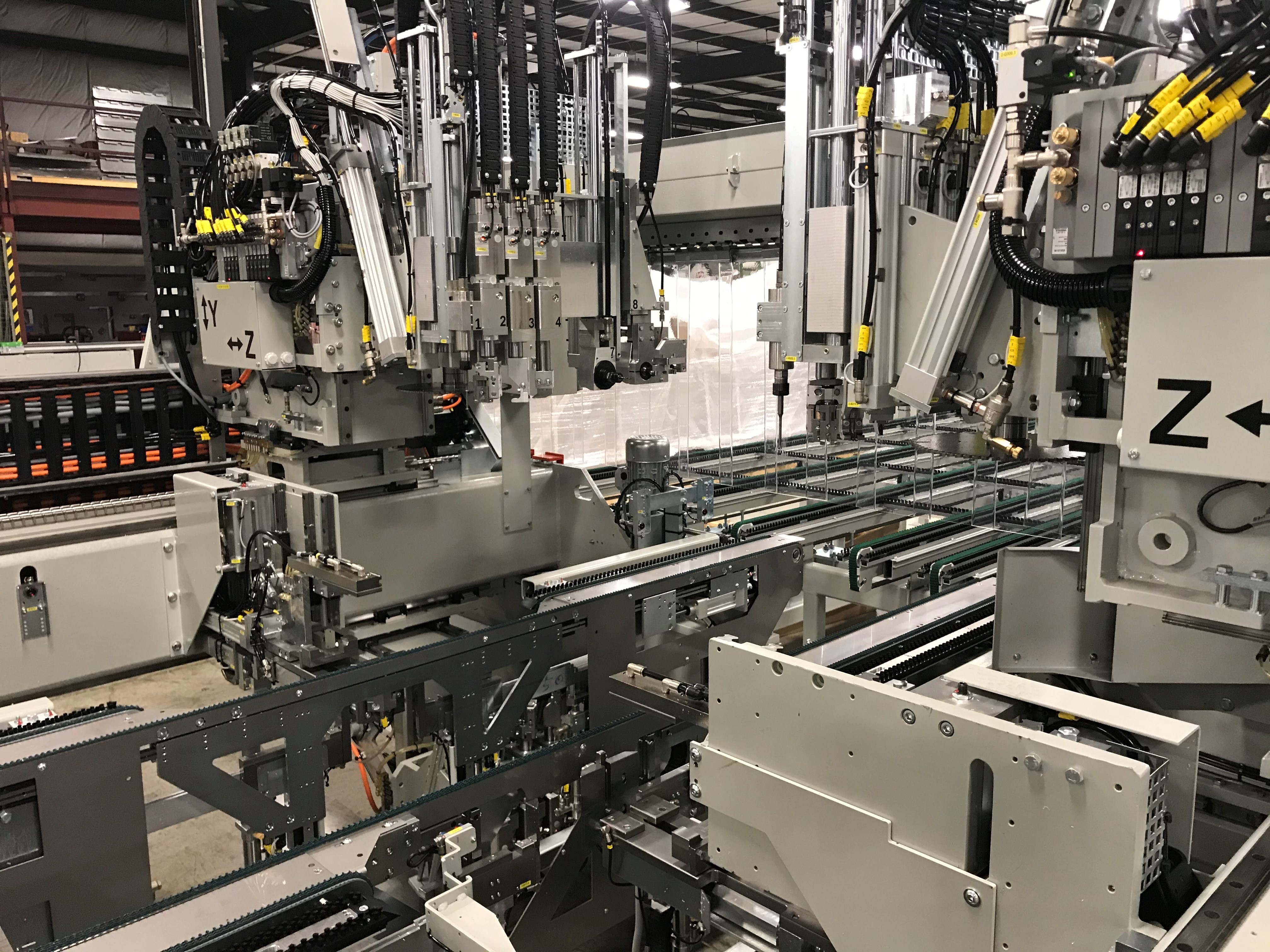 Un positionnement optimise de tous les outils d’ébavurage, ainsi que l’usinage parallèle piloté par le software jusqu’au côtes mini indiquées permettent à cette machine des cycles de travail extrêmement court. Aussi l’usinage standard tridimensionnel monté sur cette machine avec ces 7 ou 13 axes à servomoteur -AC à positionnement électronique constitue le garant de la flexibilité et de la rationalité. Cela permet le positionnement de cette machine par l’intermédiaire d’un pilotage CNC et librement programmable et des indications protocolaires de la production et comme option la reconnaissance des profiles avec possibilités d’exploitation et transfert des données pour d’autres usinages ou d’autres machines. Cet équipement est prévu avec des prises sérielles pour le fonctionnement en Online, ceux-la permet la réception et l’envoi des données à d’autres machines couplées et/ou autres systèmes d’exploitation à PC.